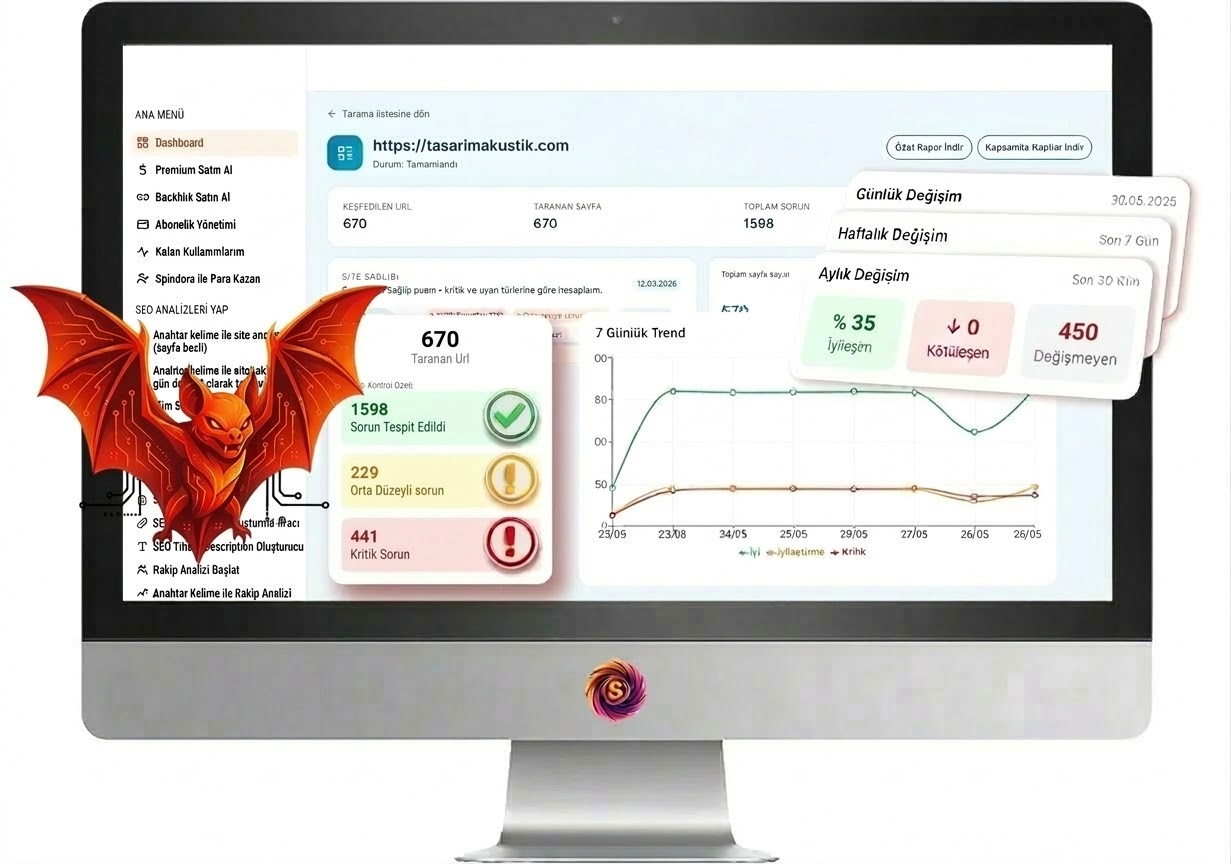 Spindora, siteni düzenli olarak tarayıp teknik hatalar, içerik eksikleri ve sayfa performansı hakkında özet raporlar üretiyor. SEO danışmanlığı verdiğim markalarda da tüm süreci bu raporlar üzerinden yürütüyorum. Böylece hem ben hem de ekipler; "Bu hafta ne yapmamız gerekiyor?" sorusunun net bir cevabına sahip oluyoruz.